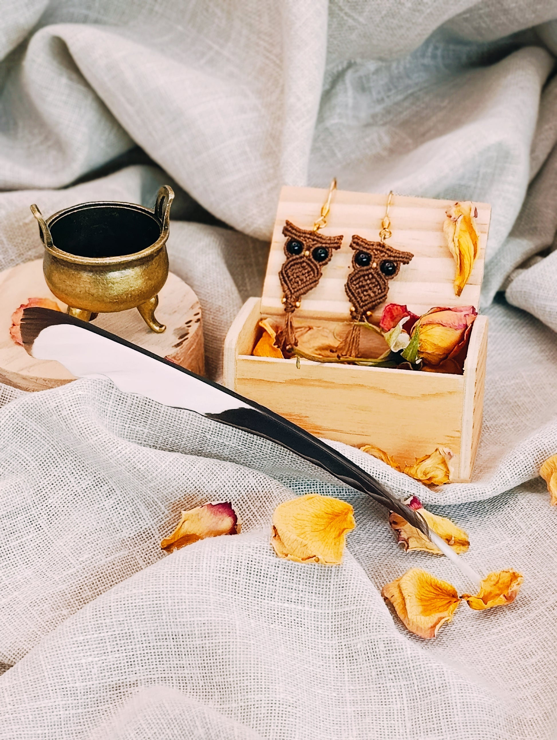Boucles d'oreilles P'tits Familiers - Hiboux - Lithothérapie & Micro Macramé