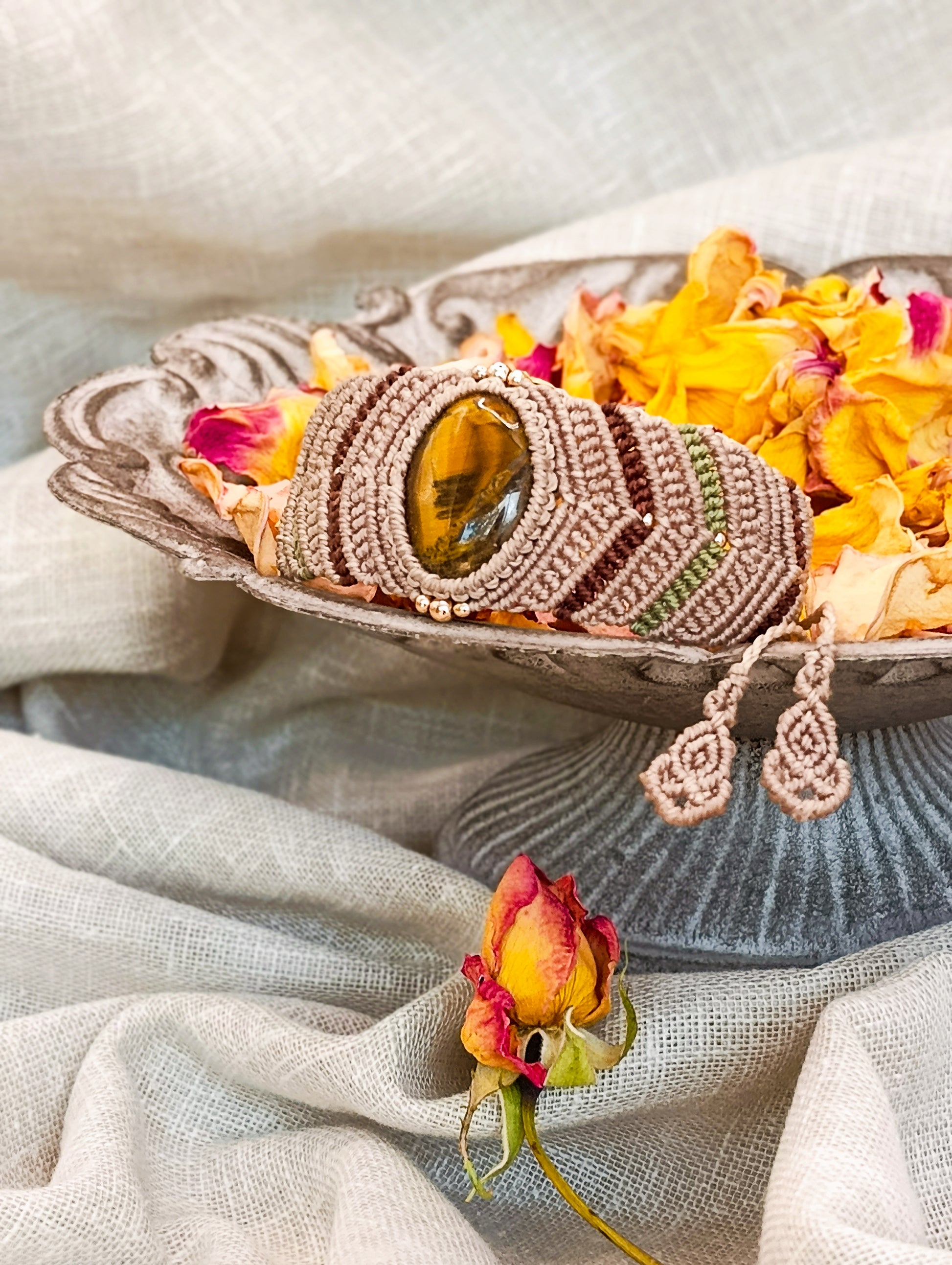 Bracelet Manchette Vision - Lithothérapie & Micro Macramé